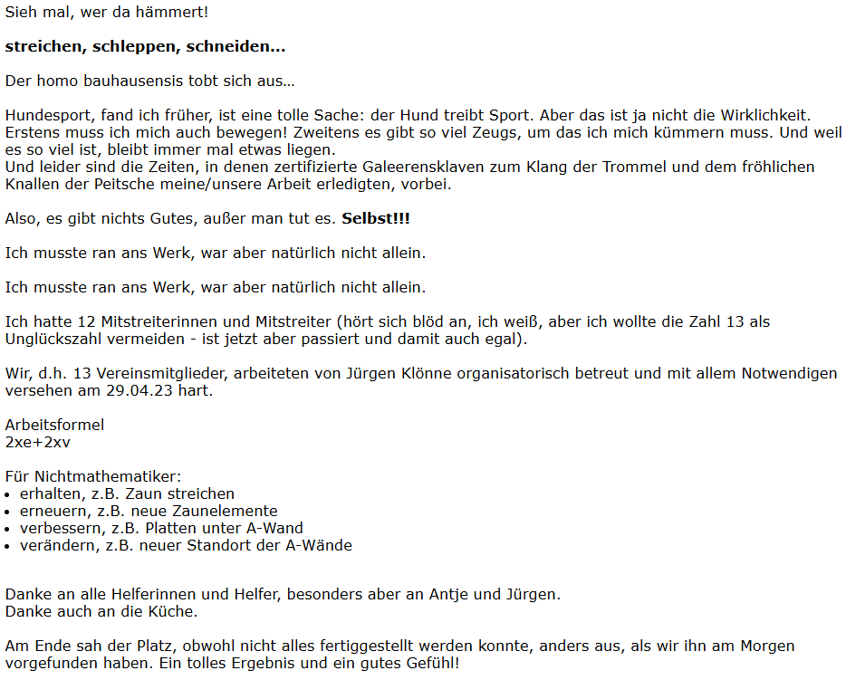 kurz zuvor verstorben. Er war Anfänger im Hundesport, hätte