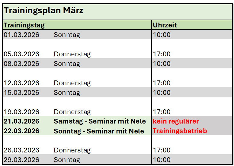 Trainingsgebühr für Nicht-Mitglieder + Gäste: 2,00 € pro Trainingstag